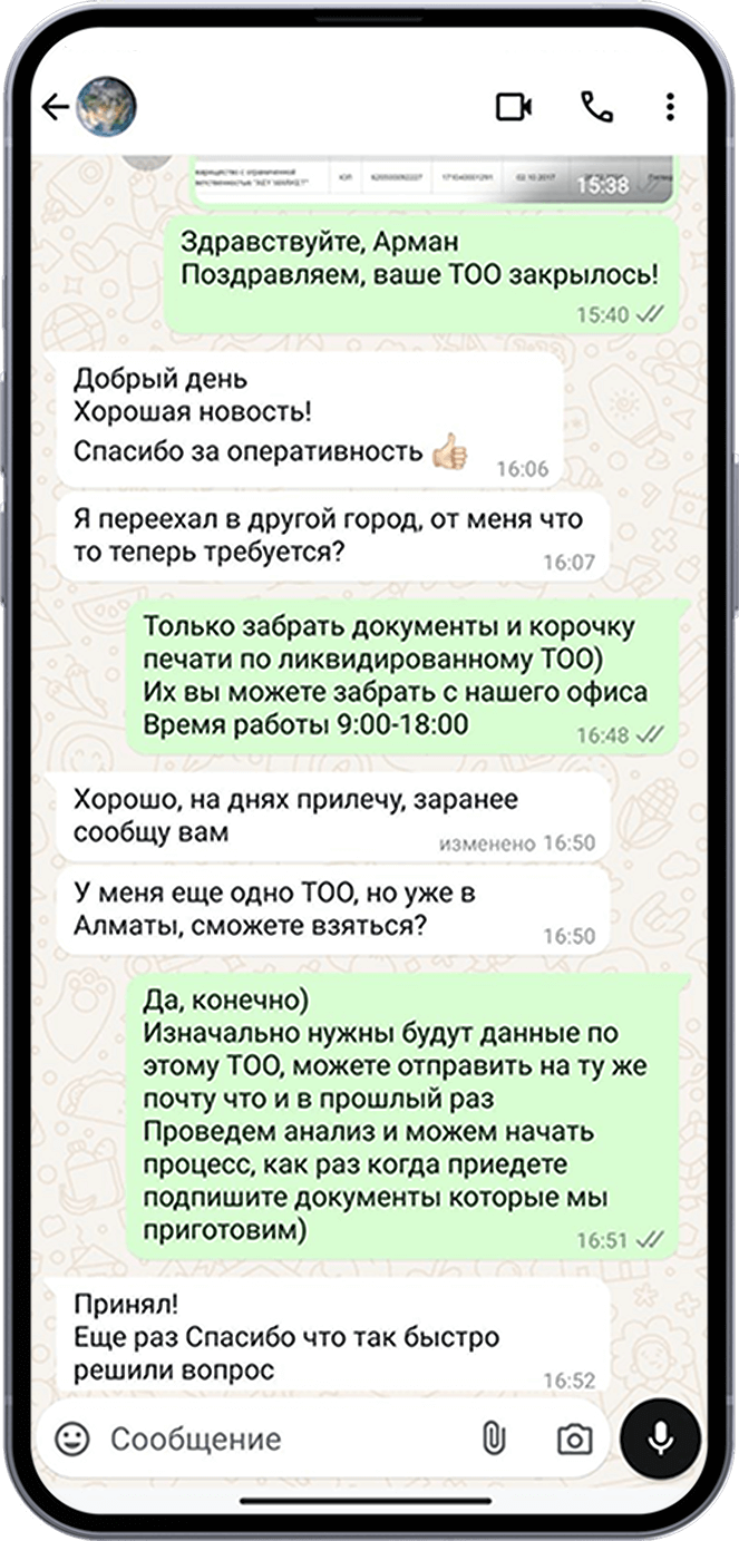 После полного анализа компании сформировали все необходимые документы, и только за один приезд учредителя подготовили и начали процесс ликвидации